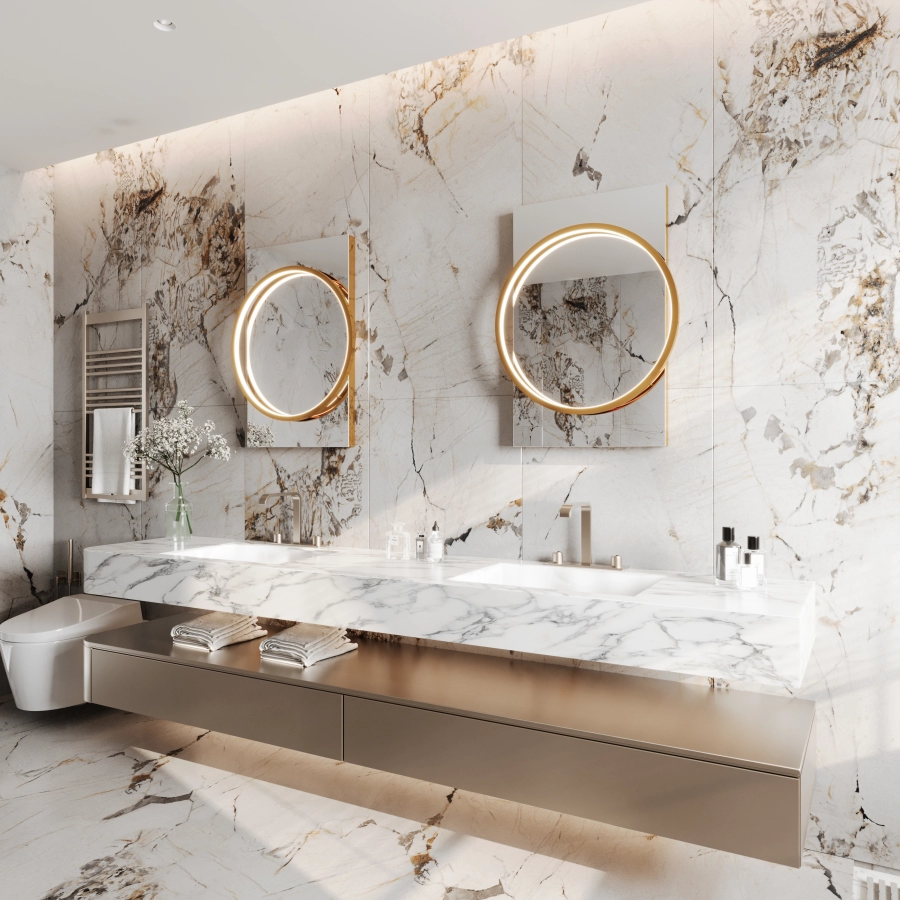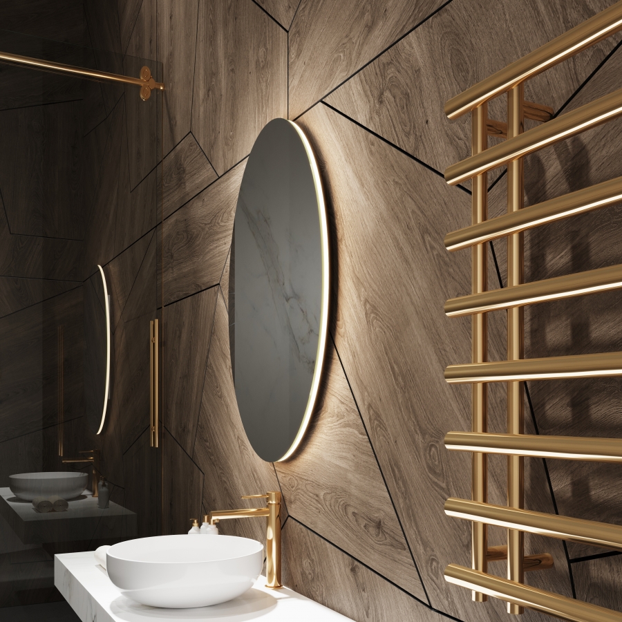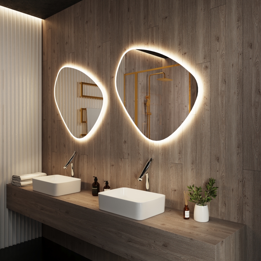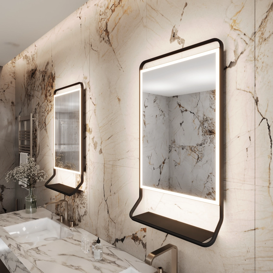Modern mirrors with integrated lighting for bathrooms and dressing areas.